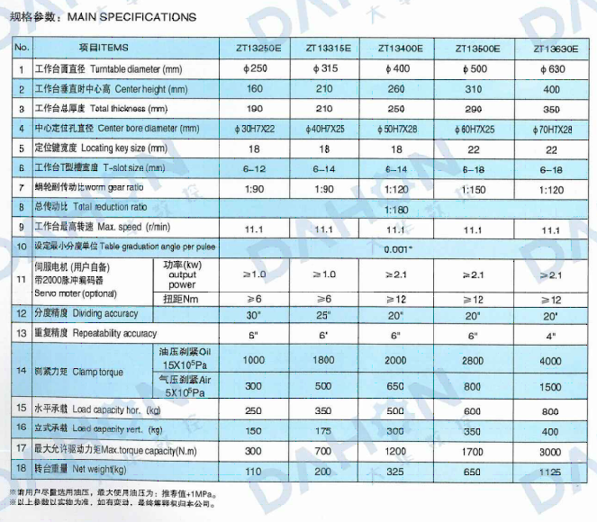 • 產(chǎn)品名稱: ZT13(250-630)E系列立臥兩用數(shù)控回轉(zhuǎn)工作臺(tái)(分站)