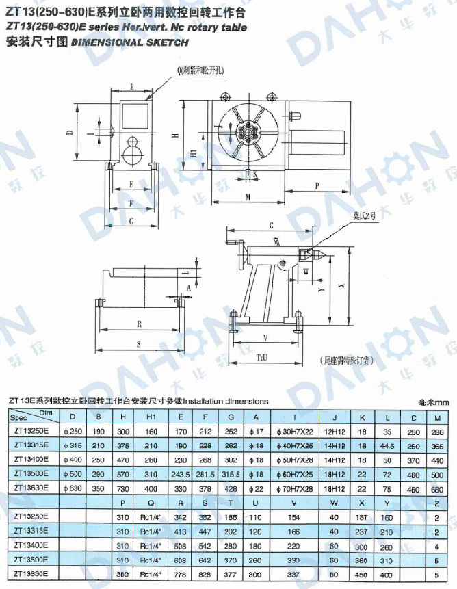 ZT13(250-630)E系列立臥兩用數(shù)控回轉(zhuǎn)工作臺(tái)(分站)