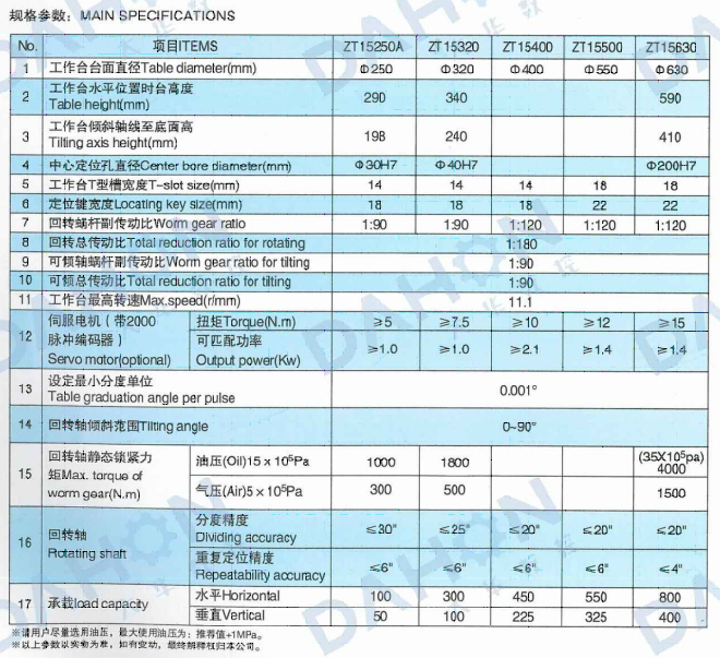 ZT15(250-630)系列手動可傾數控回轉工作臺(分站)