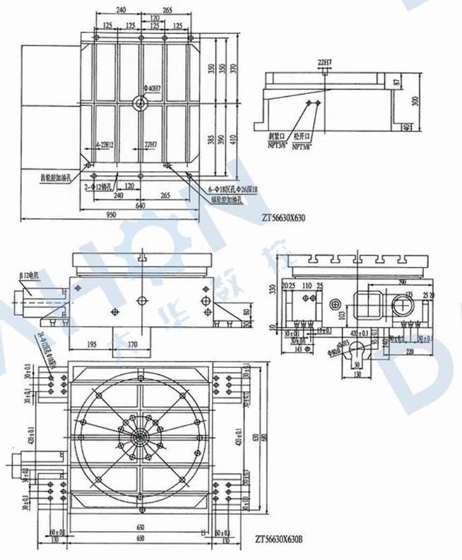 ZT 56系列數控等分轉臺用于數控銑、鏜床及加工中心加工等分零件的加工,它采用伺服電機驅動,三聯齒盤精確定位,具有精度高、載重大、精度保持性好等特點。(工作臺可根據用戶要求訂做圓形或知形)
